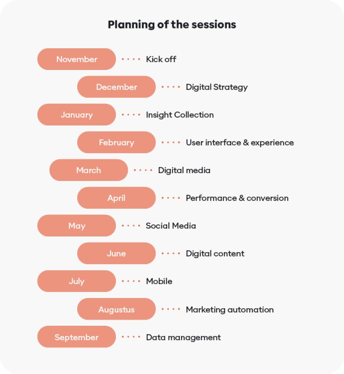 Entre des sessions uniques et des programmes de formation sur-mesure repartis sur plusieurs mois, nous avons regroupé des experts internes et externes afin de développer les compétences digitales des équipes marketing, communication, sales, project management…