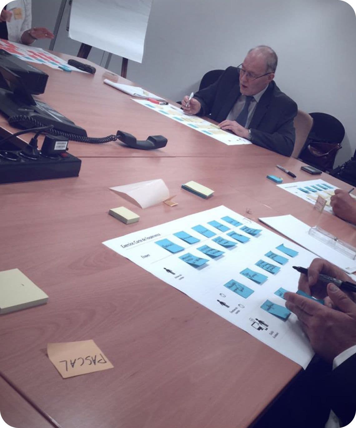 Nous organisons régulièrement des sessions d’inspiration et de formation pour les équipes internes en regroupant les différents services de l’entreprise: marketing, sales, innovation..