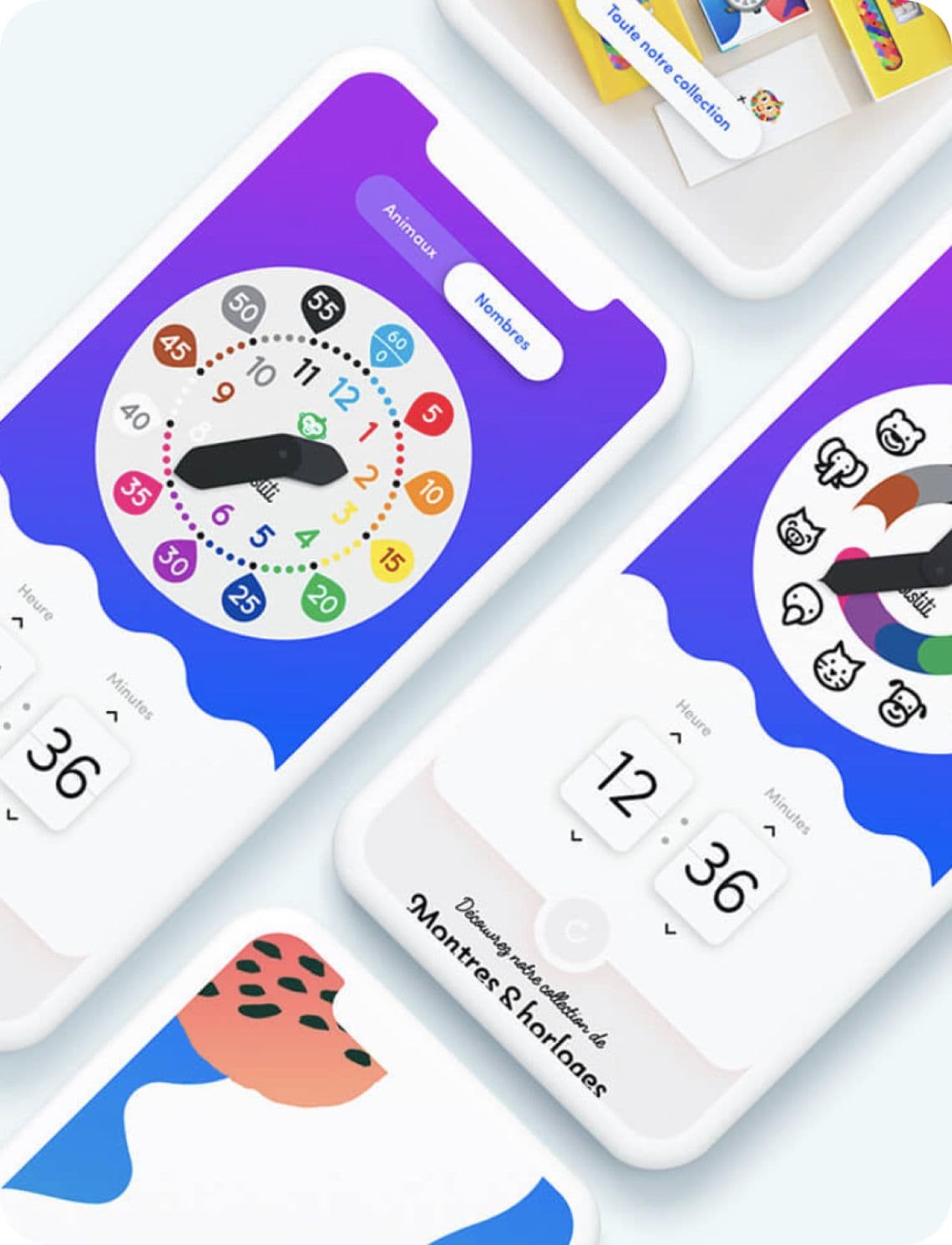 Nous avons développé une app éducative pour la marque afin de donner la possibilité aux parents d’accompagner leurs enfants dans l’apprentissage du temps.